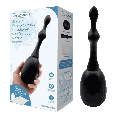 Elevate your intimate hygiene with this AquaClean douche set, equipped with a one-way valve and beaded nozzle for precise and mess-free cleansing. Experience confident freshness and ease of use like never before. The one-way valve prevents water backflow into the douche bulb, which holds up to 5 fluid ounces (150ml). The set also includes a travel-friendly compact douche and storage bag for on-the-go clean.