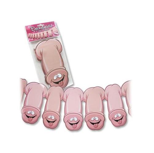 Bachelorette Pecker Banner from Ozze Creations. Banner is 3 feet long with funny cartoon peckers.