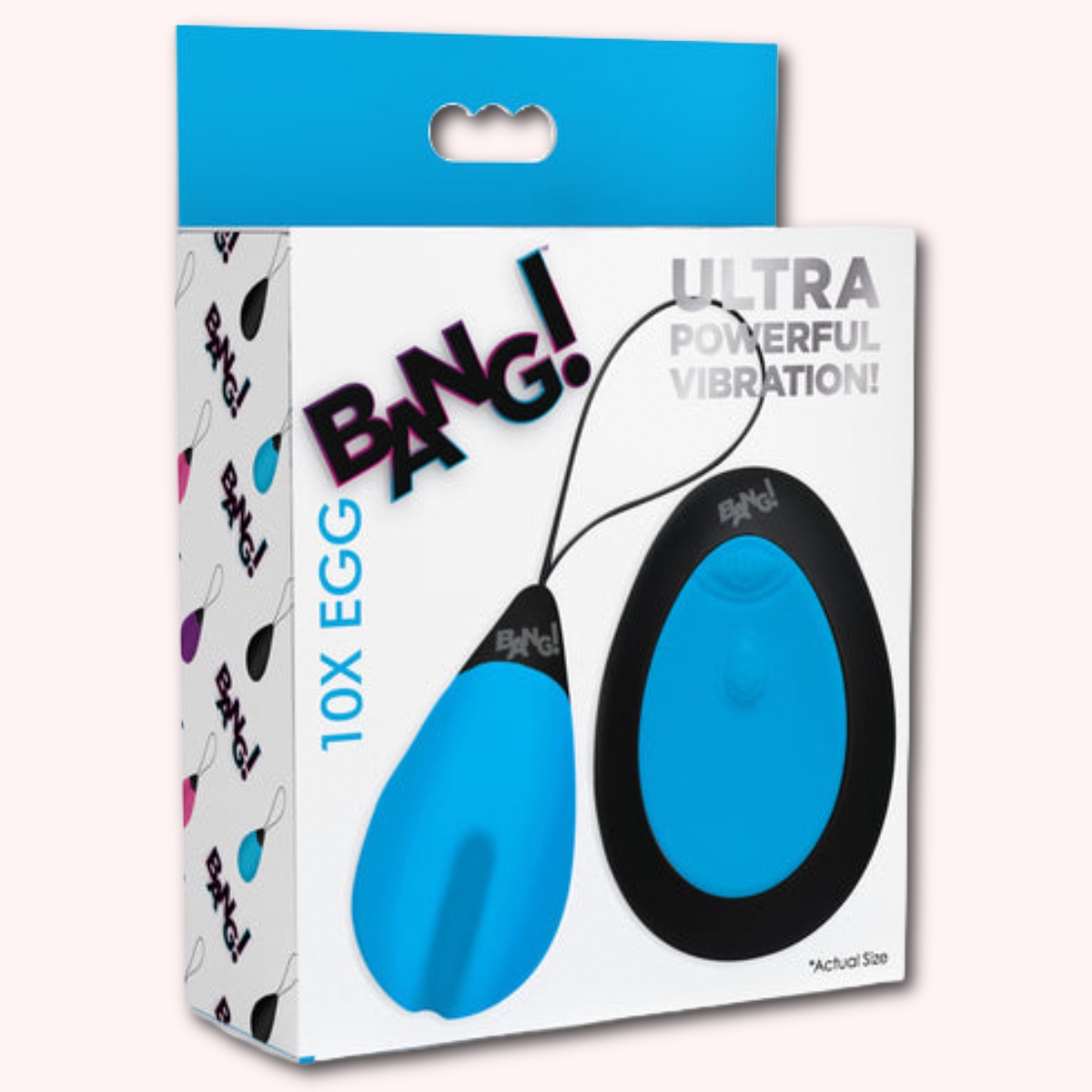 Bang 10X Rechargeable Silicone Vibrating Egg w/Remote Control Blue