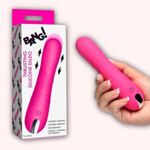 Bang! Thrusting Rechargeable Silicone Vibrator – Pink