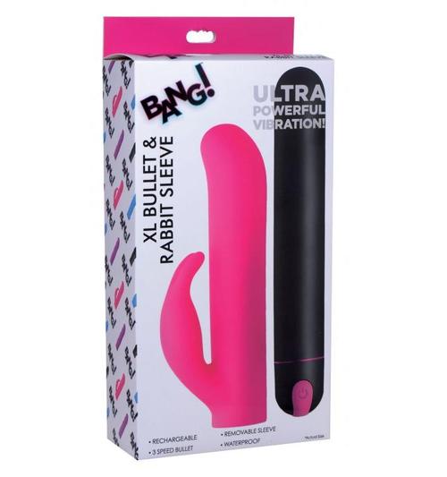 This extra large vibrating bullet features an extended body – slim and silky smooth with a powerful motor for exciting internal or external pleasure! Featuring a satisfying rabbit shaped silicone sleeve for buzzing clitoral pleasure as you thrust in and out. The outer silicone sleeve can be removed for a smooth and sultry bullet if you prefer something more discrete.