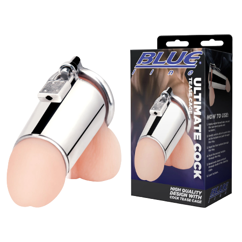 The Ultimate Cock Tease Cage is a cylinder-shaped chastity device that provides a nearly solid enclosure to the shaft, exposing just the tip. When the Ultimate Cock Tease Cage is worn, the wearer can experience the way that denying sensation heightens arousal to explosive new levels. With a separate ring to wear around the testicles, this chastity device offers a kinky sensation boost. Lock the device in place using the included padlock to keep him securely entrapped.