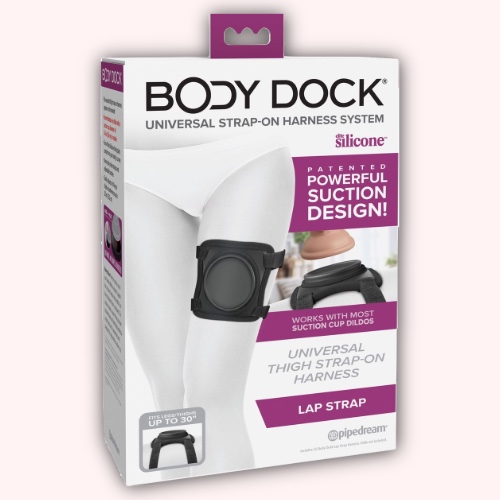 Everybody loves a good lap dance, but don’t you wish you could take it further sometimes? Well, now you can with the patented Body Dock® Lap Strap! It features a premium silicone docking plate and adjustable side-release buckles, so you can comfortably wear it around your leg/thigh while your partner gives you the sexiest lap dance ever. Changing your favorite strap-on accessory has never been faster or easier! It’s as simple as attaching the suction cup on your favorite dildo or vibrator to the docking plate, while the nylon straps easily adjust to fit most sizes and body types. Best of all, it works with most dildos on the market today, including some you may already own. No rings. No snaps. No hassle!