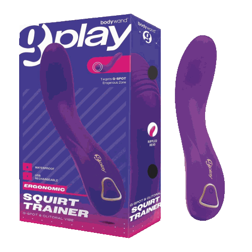 Introducing G-Play from Bodywand! The Ergonomic Squirt Trainer is a powerful, yet beautiful g-spot vibrator that’s bent and curved to hit your sweet spot. Nine powerful modes of vibration let you personalize your pleasure. The clitoral stimulator is shaped to target the clitoris with powerful vibrations, and the rippled bulbous head adds maximum g-spot stimulation. The vibe is USB rechargeable and waterproof, and each package includes a travel/storage bag for safe-keeping.