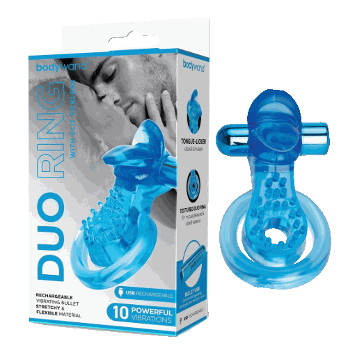 Discover orgasms together with this rechargeable vibrating ring, featuring 10 powerful vibrations and a textured external stimulator that hits all the spots. This couples toy is designed for intensified shared pleasure. The textured rings are great for mutual pleasure, and the USB rechargeable bullet vibe can be used separately, giving you two sex toys in one!