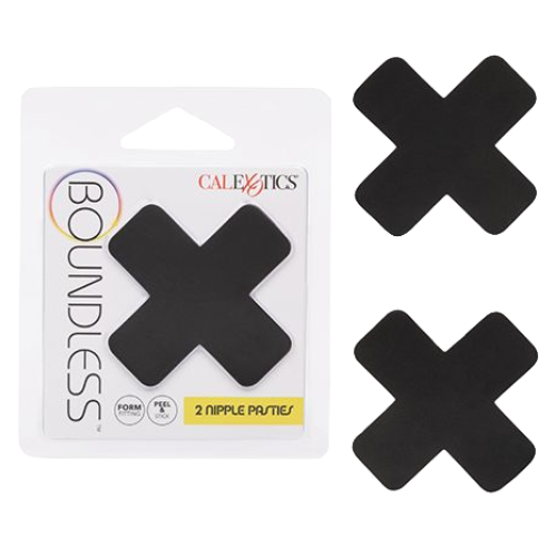 Give your goodies a seductive upgrade with the edgy Boundless™ 2 Nipple Pasties. These sexy pasties are ready to play with a form-fitting design, self-adhesive tape, and bold “X” shape. The form-fitting design and self-adhesive tape are made for extended playtime and can stay in place no matter how much you shake and shimmy. The glamorous nipple pasties are the perfect addition to any wild music festival look, rave outfit, Pride ensemble, or as luscious lingerie. Easy Application – Thoroughly clean and dry desired location, peel and stick adhesive tape, and press firmly in place to ensure long-lasting wear. For best results, avoid using lotion or oil on location prior to use and apply any makeup/jewels/glitter after applying pasties.