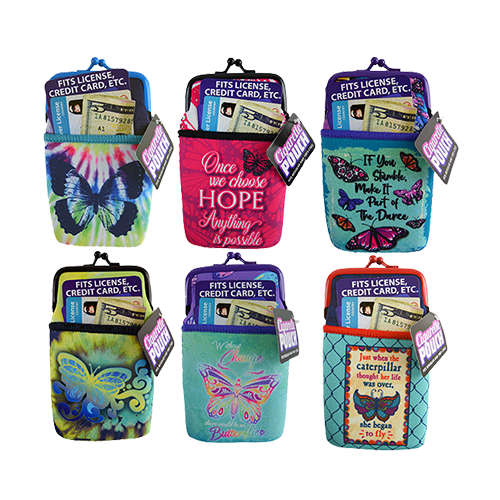 Cigarette Pouch made of water resistant neoprene that comes in various butterfly designs, features a multipurpose pocket.