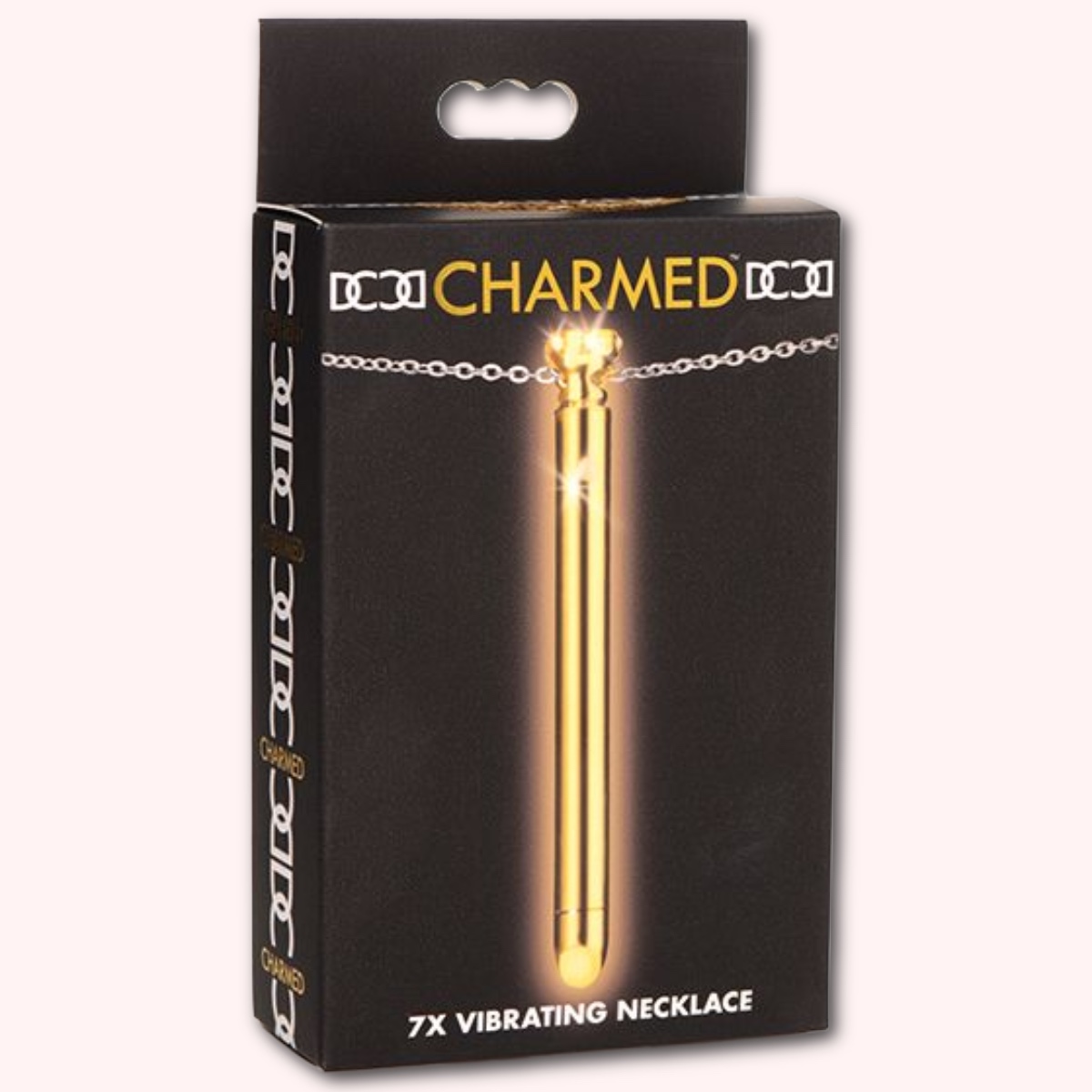 Dare to wear your favorite vibrator right around your neck! The sleek, sexy and stunning metal and rhinestone gem vibrator is made of nickel-free metal for sensitive skin and packs powerful vibrations. Choose from 7 different vibe patterns that you can feel along the shaft and in the pinpointed, smooth, round tip. Recharge using the toy-specific, USB charging cable when not in use. Wash with warm water and soap, then spray with a toy cleaner and wipe dry. Enjoy wearing this gorgeous, stainless steel vibrator around the zinc alloy chain at your neck. The dazzling gem stones will catch your lover’s eye and match any chic or edgy aesthetic! When you’re feeling aroused, take the necklace off and simply press the button at the top to turn the vibrations on. Use the smooth, round tip to get exactly to the spot on your clit that feels divine, and enjoy living in ecstatic bliss with a beautiful toy that only those who are in the know… will really know about! To charge, carefully unscrew the top of the vibrator to reveal the charging dimple. Screw the pin end of the charging cable into the dimple and connect the other end to a USB port or adapter. Button on charging cable lights up while charging. Remove from charger promptly once fully charged.