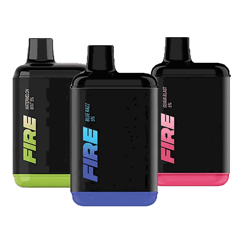 | Fire XL | Blue Razz, White Peach Mojito, Gummy Bear, Guava Blast, Peach Mango, Pina Colada, Soul Mint, Tropical Smoothie, Candy Crush, Strawberry Banana, Watermelon Mint, Berry Blast, Matcha Green Tea, Green Apple, Grapefruit, Aloe Grape, Clear, Black Ice, Tiger's Blood X Trippie Redd, Strawberry Scoopz "Smurk" X Lil Durk, Orange Juice, Mighty Mint, Virginia Tobacco, Banana Ice |