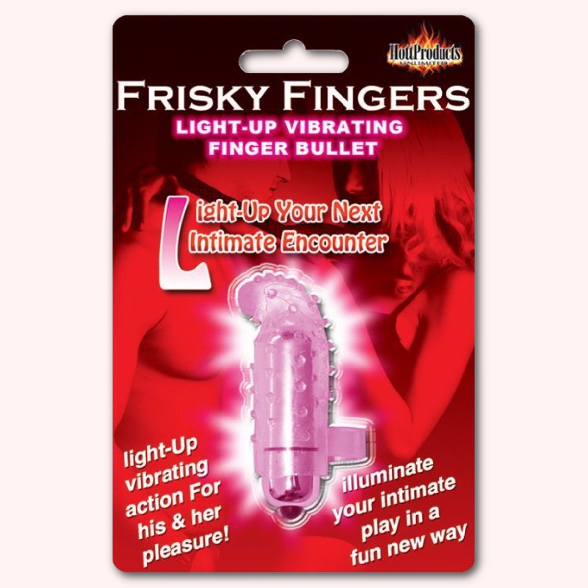 Your finger knows you best! The Frisky Fingers is made of stretchy Silicone. The finger enhancer fits around any of your fingers like a ring. A removable 2″ x .625″ bullet slides into the nubbed sleeve. The bullet has an easy on/off button for the powerful vibrations. Requires three watch size batteries, included for your convenience. Just point and hit… your spot!
