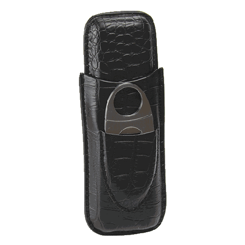 Fujima Vegan Leather Black Cigar Case & Cutter (Holds 2 Cigars)
