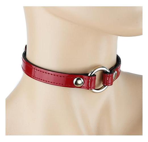 FunkPlus 1/2″ Patent Leather Choker w/One 3/4″ Round Ring Red
