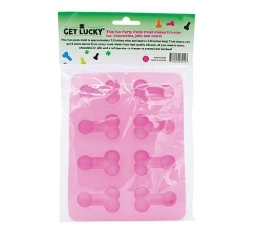 Get Lucky Penis Party Chocolate/Ice Tray . This fun Party Penis mold makes bite-size ice, chocolates, jello and more! The mold is approximately 7.5 inches wide and approximately 5.8 inches long. 8 penis pieces per mold. Made from high quality silicone. All you need is water, chocolate or Jello and a refrigerator or freezer to create you penises!