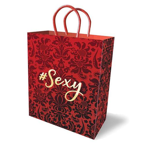 Unlike other gift bags, you’ll be proud to wrap your naughty gifts in these playfully suggestive bags. They look expensive and feel amazing! High quality, unique luxury gift bags made of thick, sturdy cardstock paper with elegant woven handles. This red 10-inch gift bag with black velvet-like flocked fleur-de-lis pattern has an imprinted gold foil stamp “#Sexy”. This delightful bag is as fun to give as it is to receive.