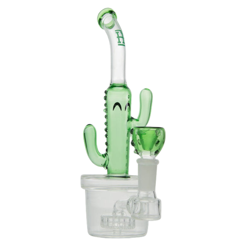 This pint-sized chugger features HEMPER’s classic showerhead perc with vibrant, cactus-green boro AND a matching bowl. This hand-blown cactus figurine has a sturdy planter-pot base and oil-catcher making it perfect for flower bowls OR a fully functional e-nail setup.