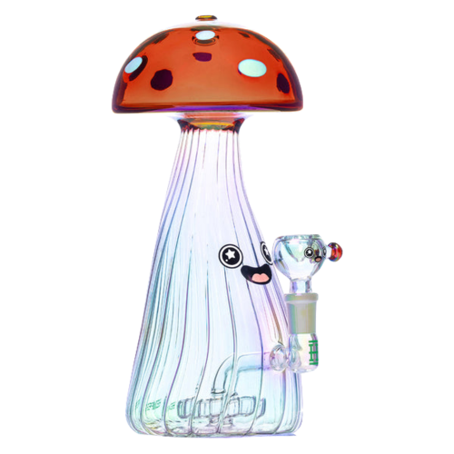 Probably one of the most charming pieces you have ever seen, the 9.5″ Trippy Shroom Bong is an absolute masterpiece right at first glance. This cute bong is decorated with a red mushroom at the top and features an Iridescent finish alongside a scalloped glass body.