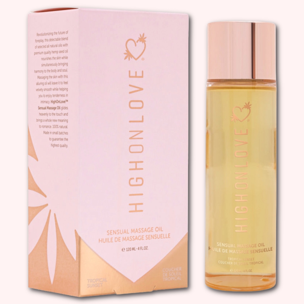 Revolutionizing the future of foreplay, this delectable blend of selected all natural oils with premium quality hemp seed oil nourishes the skin while simultaneously bringing harmony to the body and soul. This alluring oil has the ability to ease tension, increase energy flow and stimulate circulation, leaving your skin to feel velvety smooth. HighOnLove® Sensual Massage Oil glides heavenly to the touch and brings a whole new meaning to romance. 100% natural. Made in small batches to guarantee the highest quality.
