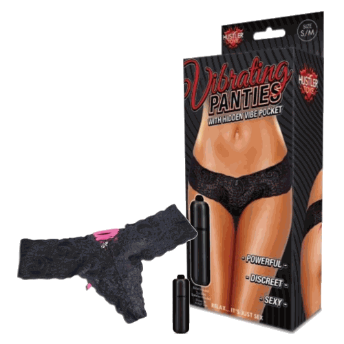Hustler Vibrating Panties w/Hidden Vibe Pocket Bullet Black S/M