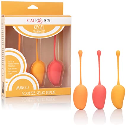 Revitalize and strengthen love muscles with the unique 3-piece Mango Kegel Training Set. Give your pelvic floor muscles the training they have been craving with 3 gradually weighted exercisers to gently increase exercise intensity and sexual pleasure. The 3-piece set includes a 45 g, 60 g, and 75 g weight and a full workout routine.