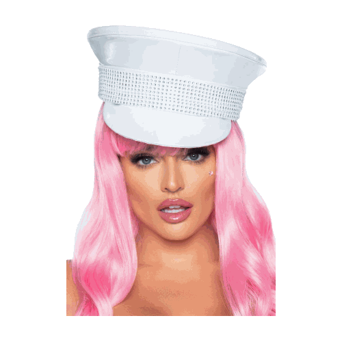 Leg Avenue Rhinestone Trimmed Military Hat – White