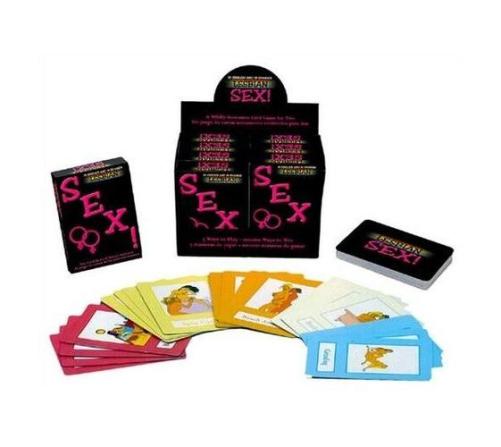 Each Lesbian SEX! card explicitly illustrates either a foreplay activity or a sexual position, and the color represents the intensity of the position. Game includes: 45 Sexual Position Cards, 5 Group Sex Cards, 3 Rule Cards, and 1 Unleash Your Fantasy Card.
