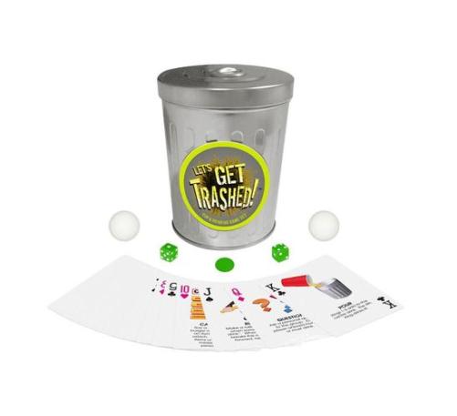 10 classic and new drinking games! This garbage can-shaped tin comes with rules and accessories for great games like Pass the Trash, Ring of Fire, Trash Can Pong, and more! For 2-20+ players.
