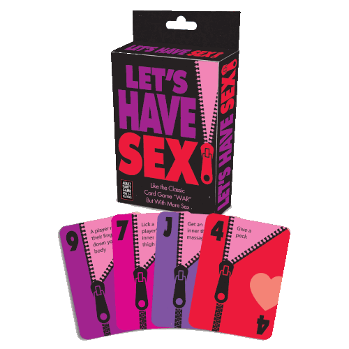 Let’s Have Sex is a game of sexual adventure. Battle your opponent by flipping over your cards to see who has the highest ranking card. When you win, you can perform our choice of action on the cards played. Who will have the most satisfying sex? As a prelude, try playing the Let’s Get Naked card game for extra sexy fun.
