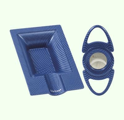 Lucienne Blue Carbon Fiber Design Cigar Cutter & Ashtray Set.