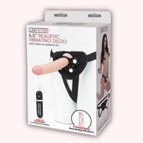 Let your imagination run wild with a satisfyingly realistic dildo that takes pleasure to the next level. Offering a delightful 6.5” of insertable length, this vibrating dildo hits the spot with its smooth tip and veiny shaft that massages with every thrust. Enjoy seven rumbly functions of vibration that can be controlled remotely with ease. This Lux Fetish set comes complete with a fully adjustable harness with a padded front panel for added comfort during extended play. Secure the dildo to the harness with ease using the included interchangeable O-rings, which can also be used with any other of your favorite dildos.