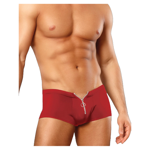 Male Power Nylon Spandex Zipper Short Red S/M