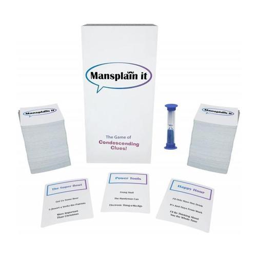 The hilarious party game where you must “Mansplain” before your team can guess each answer. Each card has three mansplaining clues on them. After you give the clues on the card, then you can offer other clues and you try to score as many points as you can in one minute.