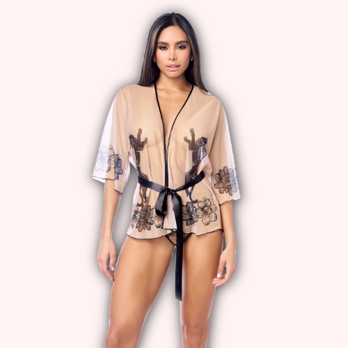 Mapalé Black Panther Robe w/Matching Panty – Nude/Black