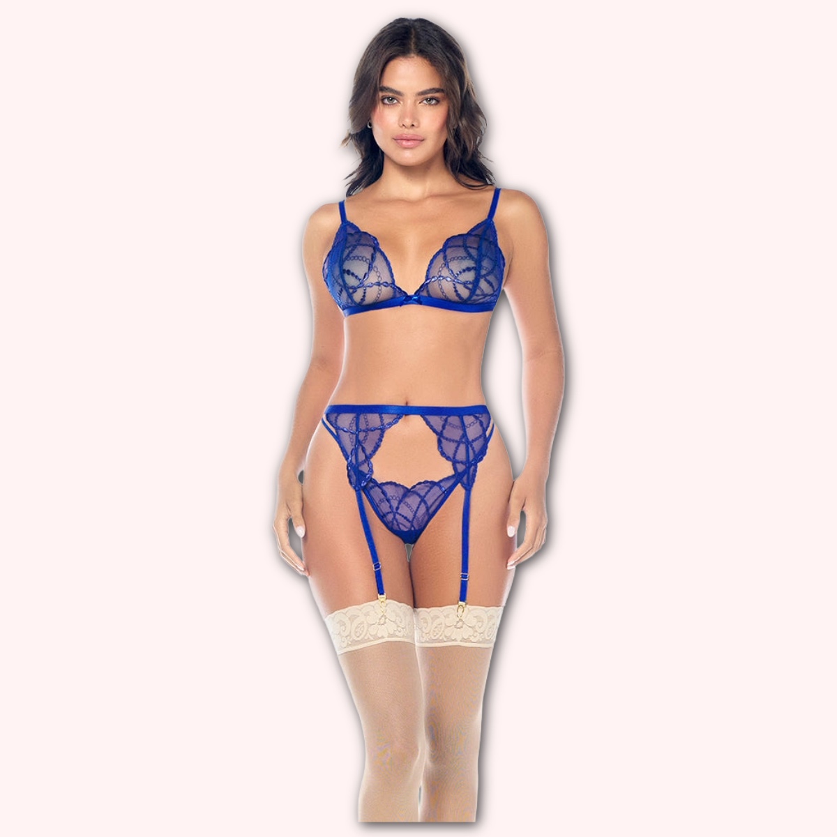 Mapalé Gemstone Dreams Three Piece Set w/Adjustable Garter Straps – Sapphire Blue
