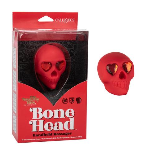 You’re sure to love getting boned by the Naughty Bits® Bone Head™ Handheld Massager. A naughty massager with a unique edgy design and 10 functions of vibration made for full body exploration. The silky smooth massager fits right between your fingertips to let you easily control the 100% play area and 10 indulgent vibration, pulsation and escalation functions. The unique rounded body has a smooth, supple surface to deliver thrilling stimulation from almost any angle you choose. Recharge the premium silicone massager in 1 hour with the provided USB charging cable to enjoy 30 minutes of high-speed stimulation or 120 minutes of low speed vibrations. While the easy-touch button controls the intensity and the vibe gives you the stimulation you want, the integrated state of the art memory chip remembers just how you like it by starting on the last function used. The self-sealing charging port and virtually seamless body let you get steamy in and out of water with this waterproof mini. The hypoallergenic premium silicone is body safe, unscented and phthalate free to keep you most sensitive spots, happy and healthy. The Naughty Bits™ collection is made to stand out in any nightstand with eye-catching designs and orgasmic features. The ultra plush silicone, sparkling gem accents, and edgy details of this gorgeous mini massager will make even the most stylish lover smiling before and after.
