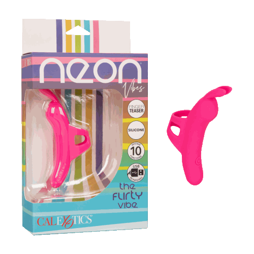 The NeonĀ® Vibes The Flirty Vibe puts knee-shaking pleasure at your very fingertips! The ergonomically curved finger vibrator is sure to thrill with pinpoint stimulation and full-coverage vibrations. The playful finger vibe indulges your every fantasy with 10 functions of vibration and tickling bunny ear teasers. The contoured finger shape and ultra-plush silicone are made to explore sensual sweet spots and pinpoint intimate desires with ease. The flickering ears and contoured body let you deliver thrilling vibrations from any angle you desire. The stretchy and comfortable finger loop allows any user to play with ease. Find your favorite setting with the touch of a button while you cycle through 10 powerful functions of vibration, pulsation and escalation. The easy-touch control button lets you enjoy frustration-free control. Get playful with up to 60 minutes of stimulation with every charge. Charge up your passion in only 1 hour by plugging the provided USB cable into the self-sealing charging port on the base of the massager. The slim massager’s discreet size makes it the perfect travel companion, letting you embrace radiating pleasure wherever your fantasies take you.