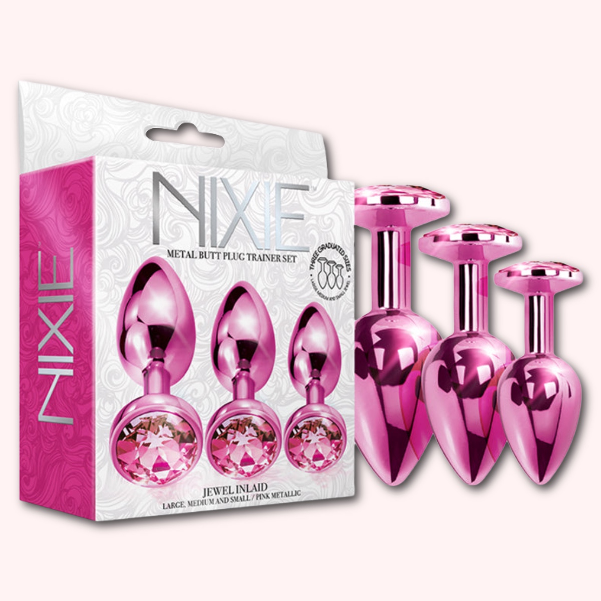 Adorn your derriere with a dazzling pink jeweled anal plug! Smooth plated slick metal finish plugs in lightweight aluminum alloy.