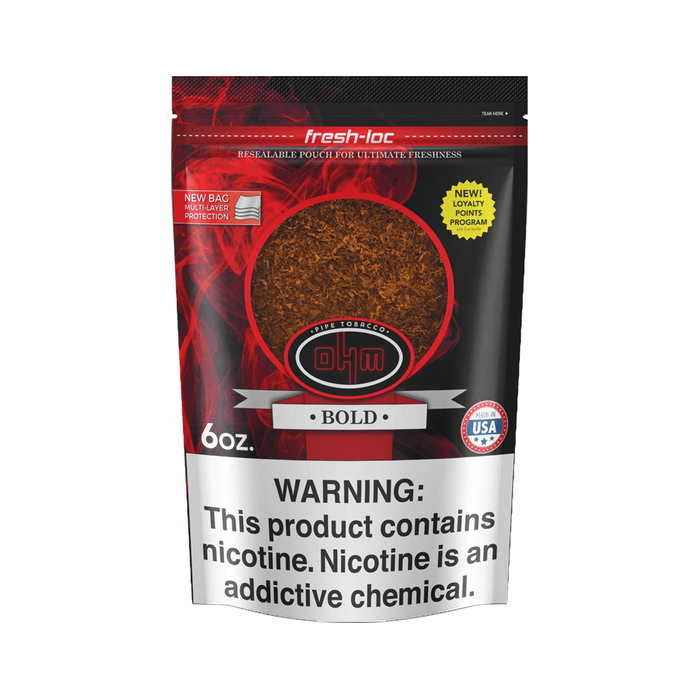 OHM Bold Pipe Tobacco 6oz Bag is made from the finest quality American grew, Burley and Virginia tobacco, with both being very mellow strains. Each OHM Tobacco is aged to mellow it further and to bring out the sweet natural tobacco flavor, then blended together in a perfect union to make a great tasting, smooth smoke that is mild to medium bodied with a flavor that’s on the not- so- intense side so you can enjoy it as many times as you like without becoming overwhelmed.