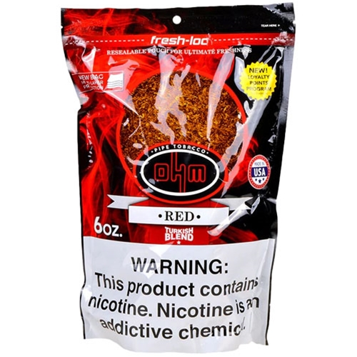 OHM Pipe Tobacco Turkish Blend Red, showcases a harmonious fusion of pure American-grown flue-cured burley and Virginia tobaccos expertly blended with exotic Oriental/Turkish varieties, imbued with natural and light robust flavors. OHM Turkish Red delivers a rich and flavorful smoking experience, characterized by minimal to no bite. Its burn is cool and clean, maintaining a consistent flavor throughout. Designed in a ribbon-style cut, the OHM pipe tobacco brand is superbly tailored for filling your favored smoking pipe, rolling papers, or filtered tubes. OHM consistently prioritizes high-quality freshness by packaging their tobacco in convenient plastic Fresh-Loc™ resealable pouch bags.