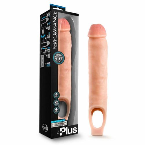 The Performance Plus 11.5 Inch Cock Sheath Penis Extender offers a smooth, realistic feel while maximizing your potential. Gain more girth and 2.5 inches extra length! The internal ribbing creates suction that holds the sheath securely in place. It also amplifies sensation for the wearer. Just insert your penis into the Performance Plus 11.5 Inch Sheath and then slide your testicles through the ball strap. Then explore new dimensions with your partner! Made of platinum cured silicone, the Performance Plus 11.5 Inch Cock Sheath is durable, body safe, and easy to keep clean.