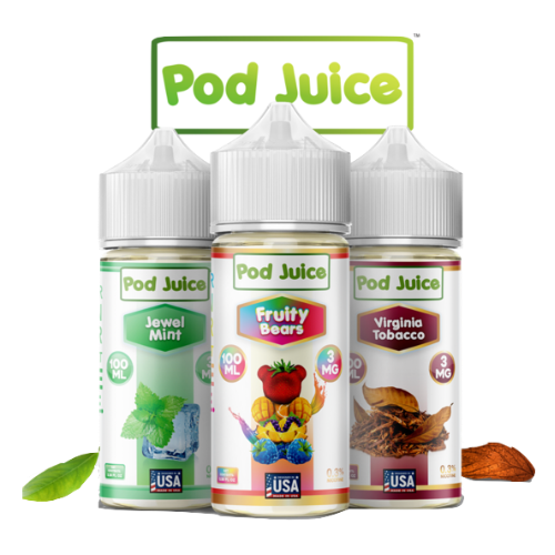 | Pod Juice Flavors | Blue Razz Lemonade, Fruity Bears, Jewel Mint, Sour Fruit Worms, Strawberry Apple Watermelon, Virginia Tobacco, Blue Razz Slushy, Jewel Tobacco, Jewel Mint Emerald, Cotton Clouds, Mango Strawberry Dragonfruit, Rainbow, Clear, Rocket Pop, Unflavored, Strawberry Kiwi Pomberry |