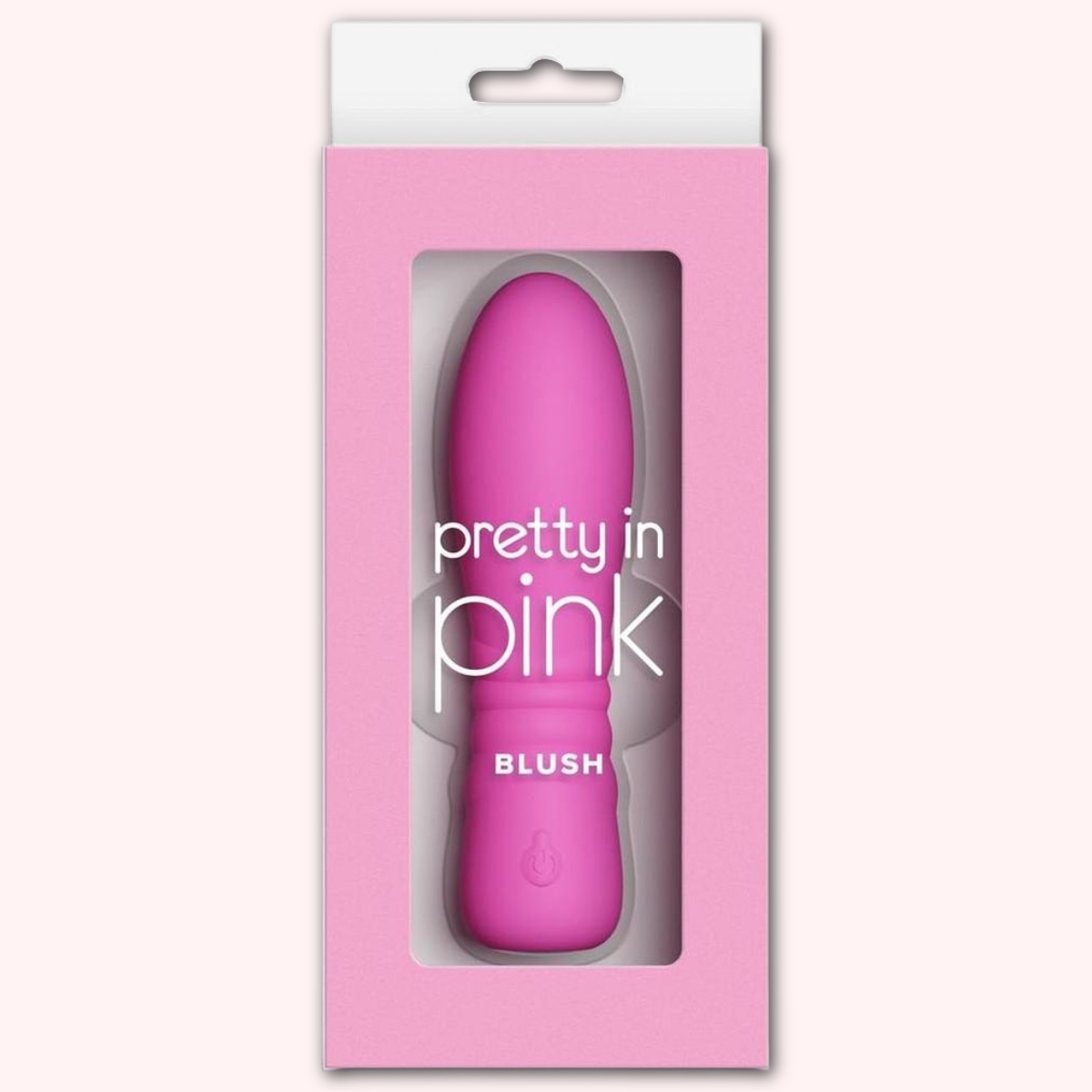Blush by Pretty in Pink – A compact silicone vibe featuring a colored LED base and velvety-smooth curves designed for effortless pleasure. Petite, playful, and rechargeable. Waterproof – IPX 6, Compatible with all lubricants including silicone lubricant. 3 speeds / 7 functions/ 10 modes. Magnet charge type.