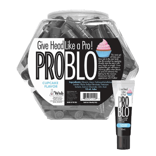 Oral Sex has never been more delicious and pleasurable! When it comes to an excellent blow job, juicy wetness is essential. There’s no shame in getting help from Pro Blo Oral Pleasure Gel. Pro Blo Pleasure Gel POP Display of 65 is available in Cupcake, Peach, Strawberry, and Watermelon. Packaged for individual retail sale, each 10 ml tube has a convenient resealable cap. Pro Blo was created to help lubricate the mouth for a slicker, wetter ride and is made in the USA.