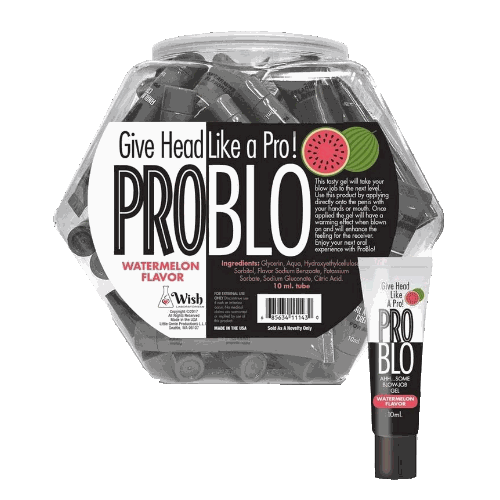 Oral Sex has never been more delicious and pleasurable! When it comes to an excellent blow job, juicy wetness is essential. There’s no shame in getting help from Pro Blo Oral Pleasure Gel. Pro Blo Pleasure Gel POP Display of 65 is available in Cupcake, Peach, Strawberry, and Watermelon. Packaged for individual retail sale, each 10 ml tube has a convenient resealable cap. Pro Blo was created to help lubricate the mouth for a slicker, wetter ride and is made in the USA.
