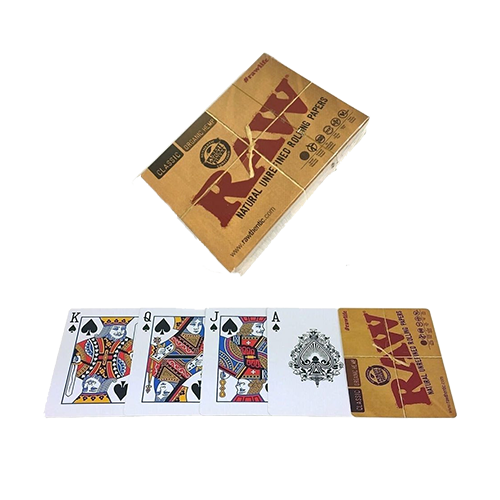 Turn your game of go fish up a notch with RAW Playing Cards! These are casino quality playing cards but better because the back looks like a pack of RAW Classic Papers. We made these for nights when you’re playing cards sitting around a table having a smokn’ card sesh!