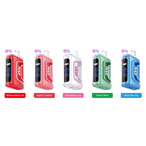 | Raz TN9 Zero Nic | Watermelon Ice, Blue Razz Ice, Miami Mint, Night Crawler, Strawberry Ice |