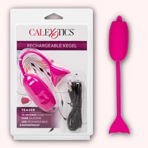 Pure Silicone Kegel exerciser with teasing tongue and easy retrieval cord. 12 intense functions of vibration, pulsation and escalation plus flickering action. State-of-the-art memory chip resumes on last function used. Easy push-button control with security travel lock feature. USB rechargeable – charging cord included. Complete charge in 1 hour. Runs for 40 minutes on high speed and 50 minutes on low speed.