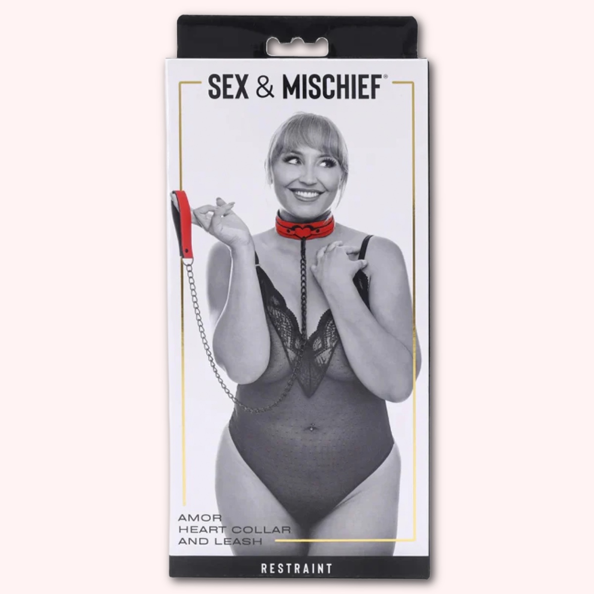 Explore the irresistible allure of the Amor Collar and Leash to guide you towards intoxicating sensations! Immerse yourself in a world of tantalizing pleasure with this exquisitely crafted accessory, adorned in a captivating red vegan leather and adorned with a dazzling silver heart embellishment. Feel the magnetic pull of desire grow stronger with each passing second, as you surrender to ecstasy.