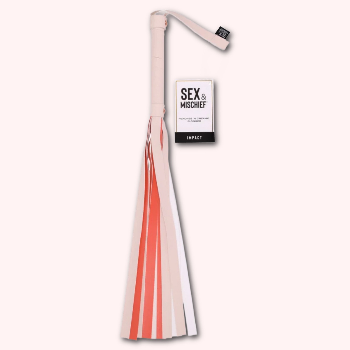Whip up some excitement with the Peaches ‘n CreaMe Flogger for sadistic pleasure that’s both a little playful and a lot of fun? Experience a flirty fusion of bright and teasing vibes alongside playful passion. Crafted with love and peach-colored faux leather, it’s as sweet as it is sassy. The striped handle adds a touch of whimsy, making it a delight to hold and a joy to wield. Add a pop of colorful pleasure with every satisfying strike to your partner and leave them blushing with delight!