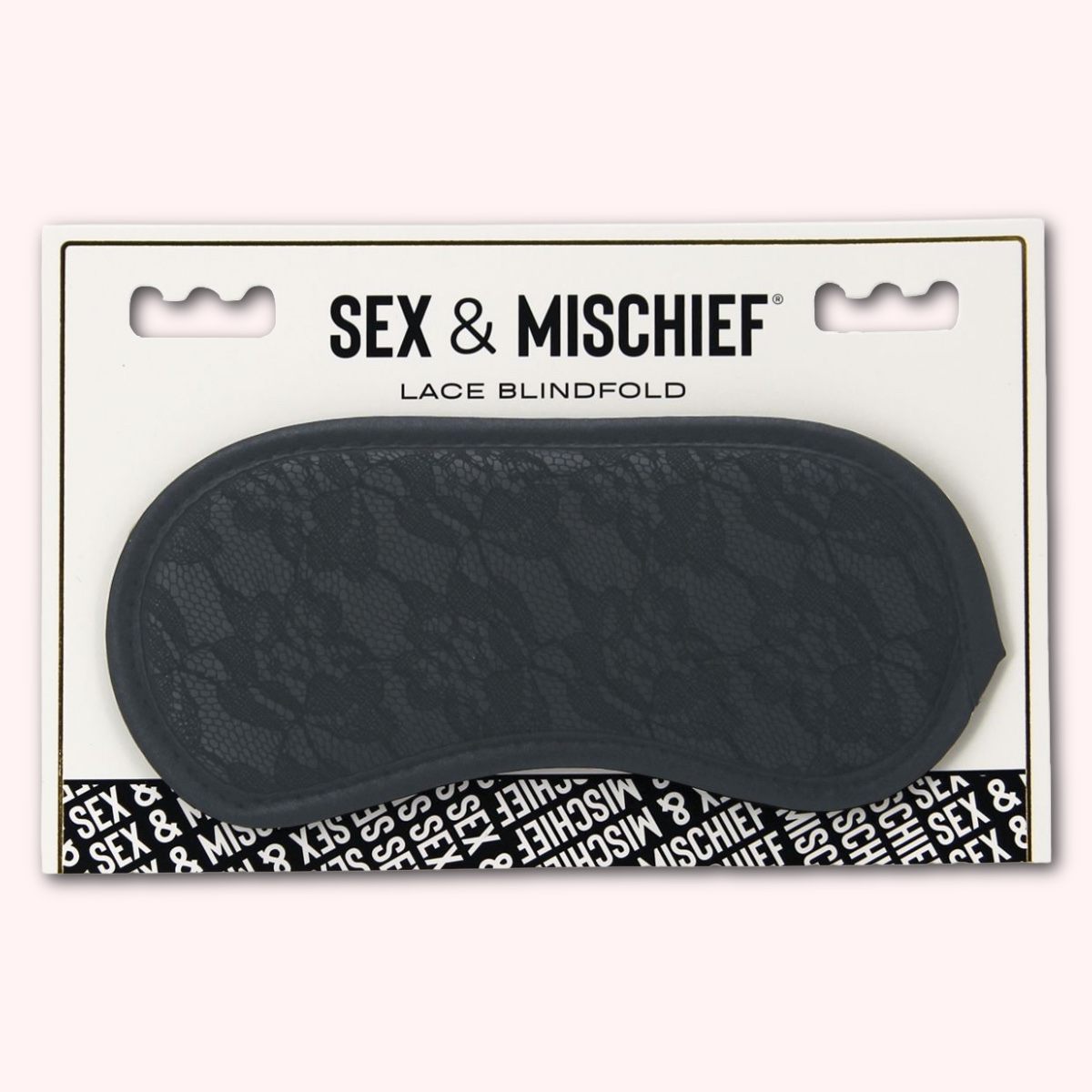Remove the sense of sight This sexy blindfold has soft, inviting fabric of fine lace while the double straps provide security and comfort. Materials: 56% polyester, 30% polyethylene, 8% polyurethane, 5% elastic,1% spandex