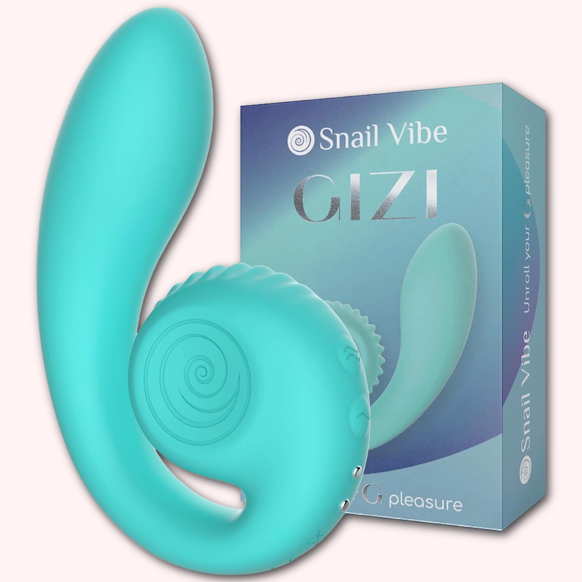 The Snail Vibe Gizi offers dual stimulation of a rabbit vibrator looking nothing like it! Its unique shape suits anatomical features of any women’s body helping to find the optimal insertion depth and angle for ultimate G-spot pleasure. Unique design offers compact size with insertion of a full-size vibrator allowing not only reaching G-spot but stimulating A spot as well on the peak of the arousal due to deeper penetration ensured by Slide’n’Roll Technique.